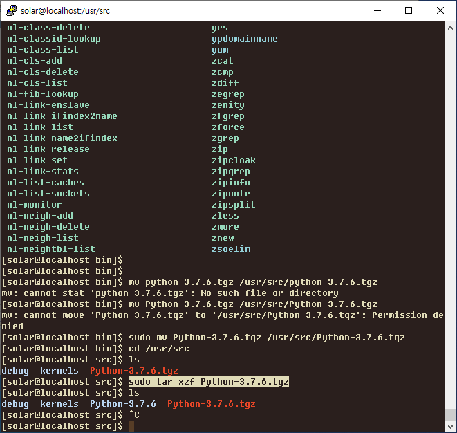 sudo mv Python-3.7.6.tgz /usr/src/Python-3.7.6.tgz