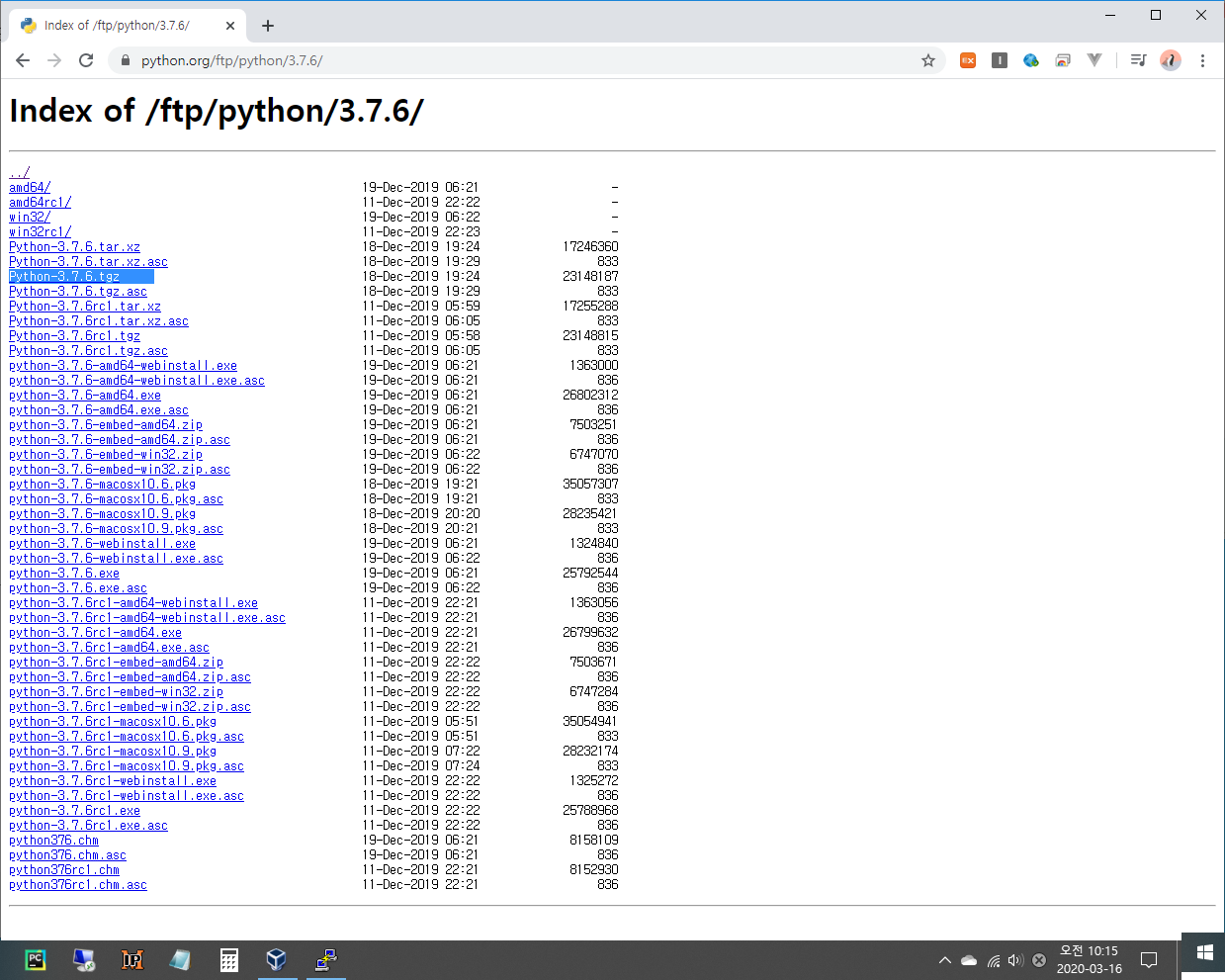 Python-3.7.6.tgz 파일이 설치됩니다.