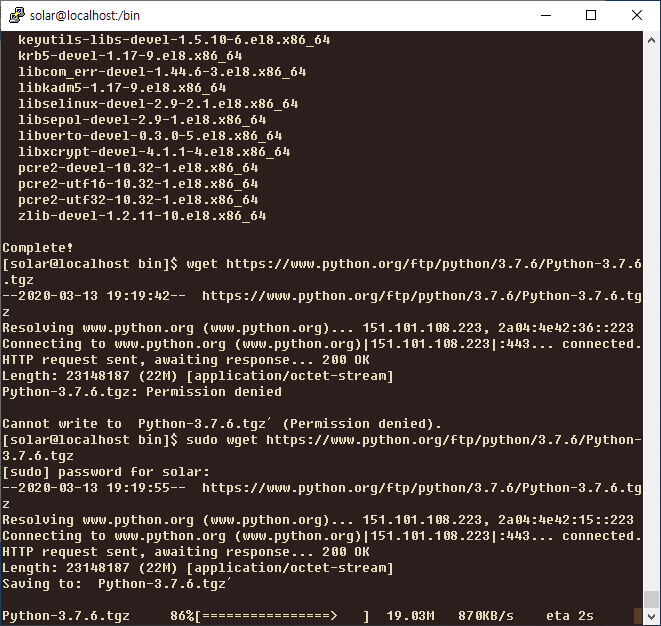 sudo wget https://www.python.org/ftp/python/3.7.6/Python-3.7.6.tgz