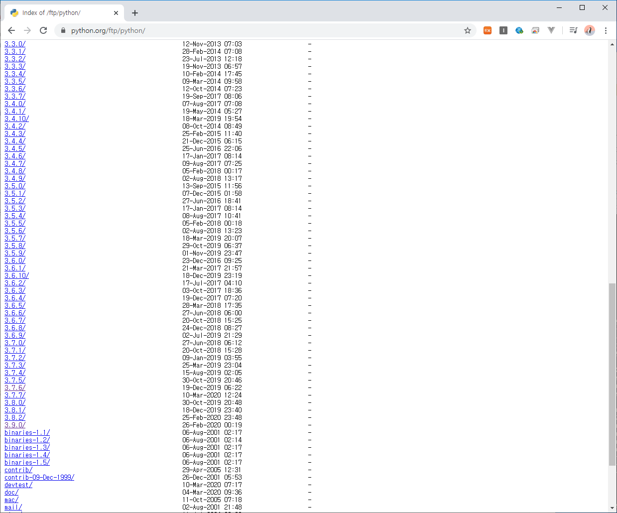 https://www.python.org/ftp/python/ 에서 버전을 확인하고