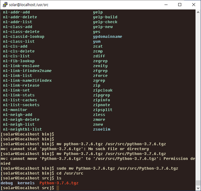 sudo mv Python-3.7.6.tgz /usr/src/Python-3.7.6.tgz
