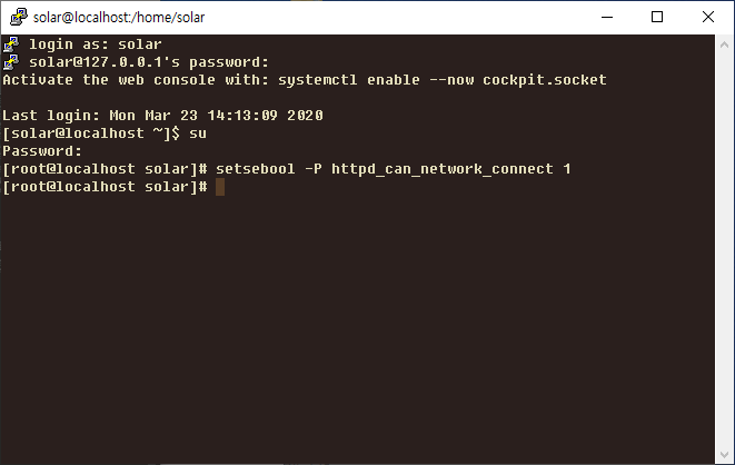 $ setsebool -P httpd_can_network_connect 1