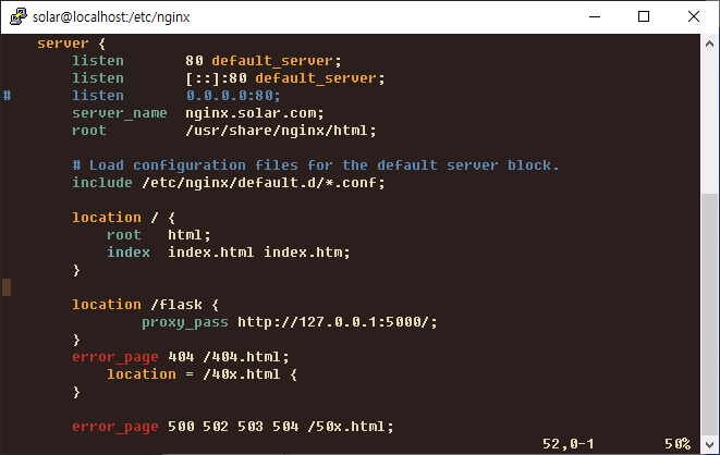 location 에 flask 접속정보를 작성해줍시다.