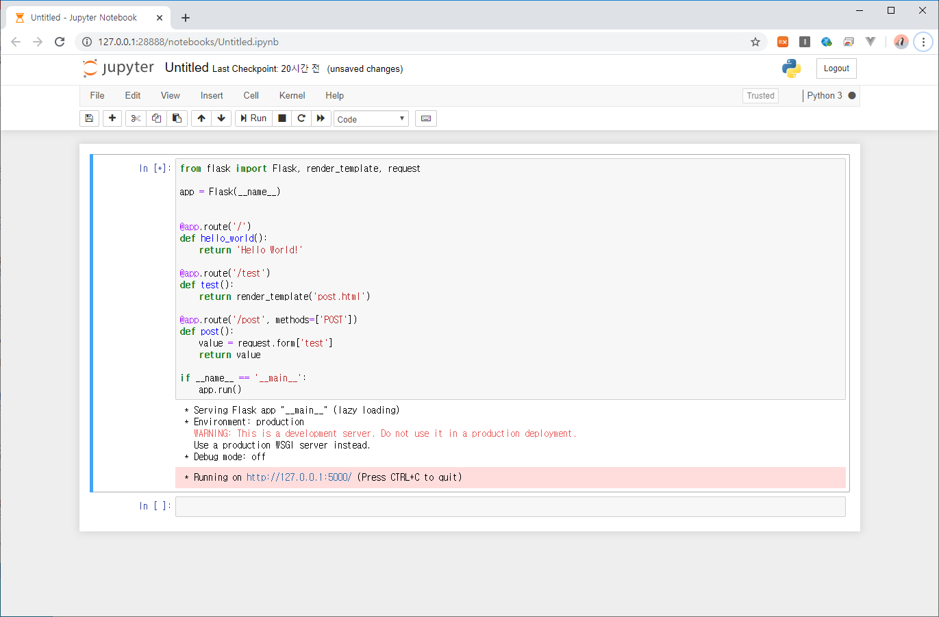5000번 포트는 Python Flask 서버를 둥둥 띄워놓겠습니다.