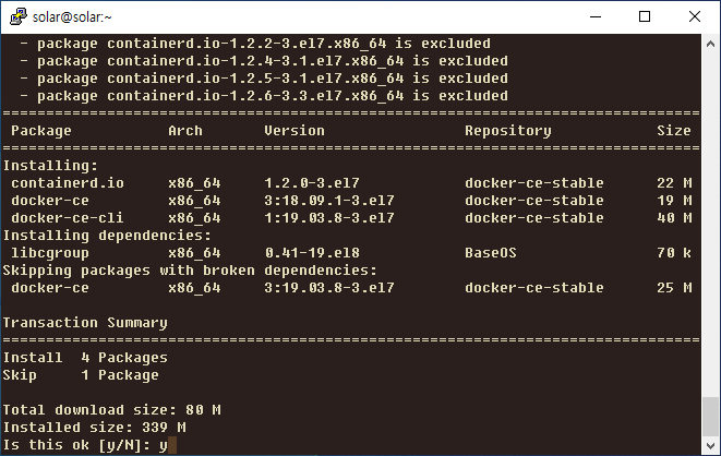 $ sudo yum install docker-ce docker-ce-cli containerd.io
