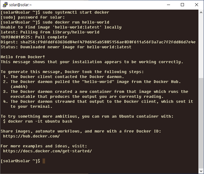 $ sudo docker run hello-world