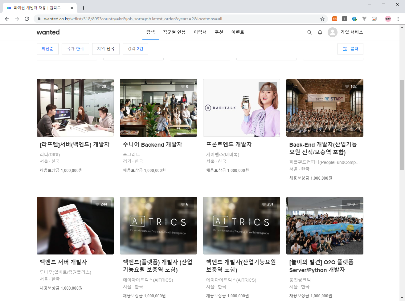 'Python 개발자는 백엔드 개발자를 많이 뽑는구나~'
