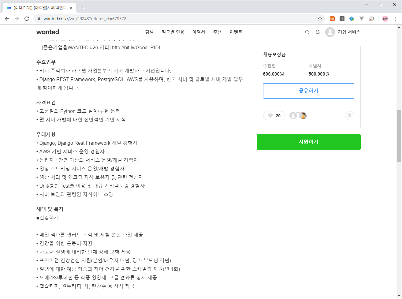 개인적으로 애용하는 '원티드' 라는 사이트이다.