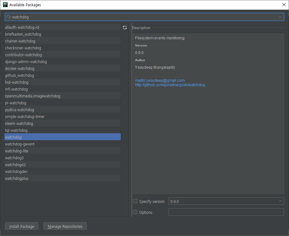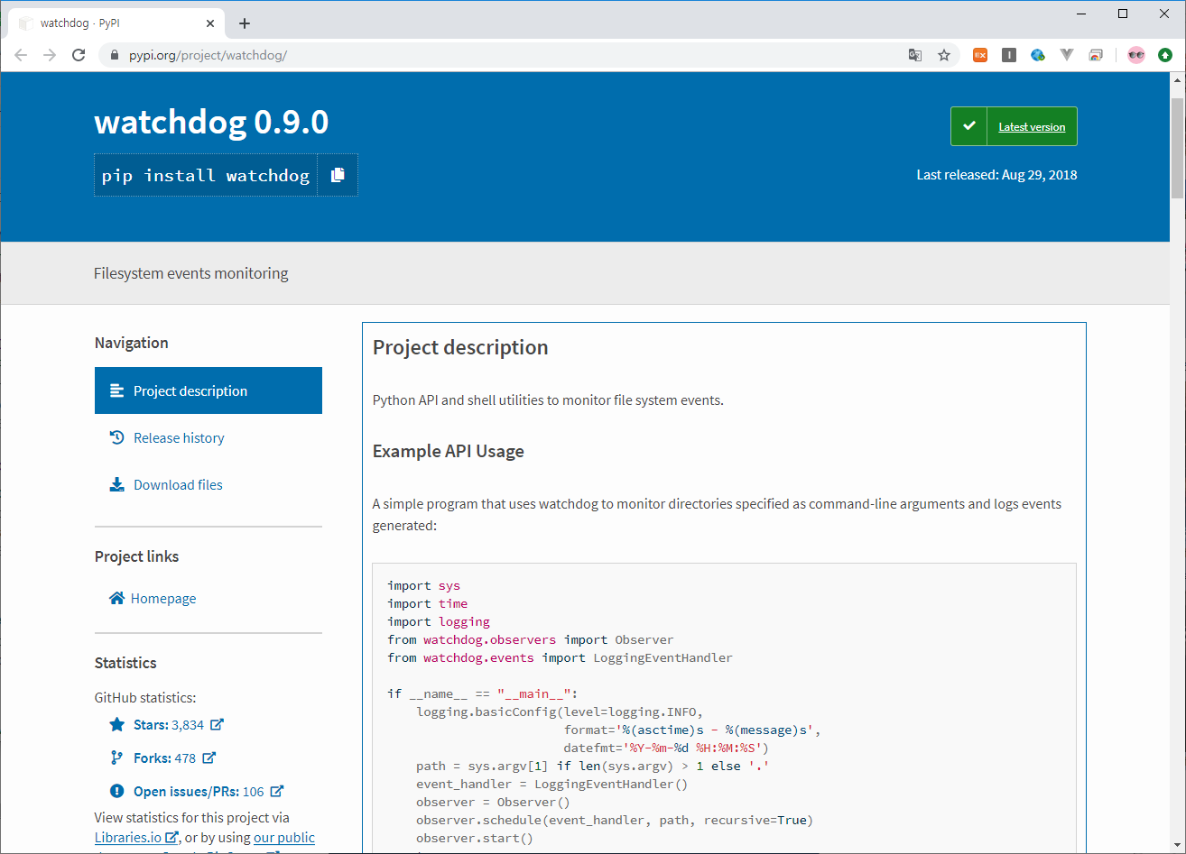 watchdog 라이브러리로 들어가보니 API Example 도 있고 바로 사용할 수 있을 느낌이였다.