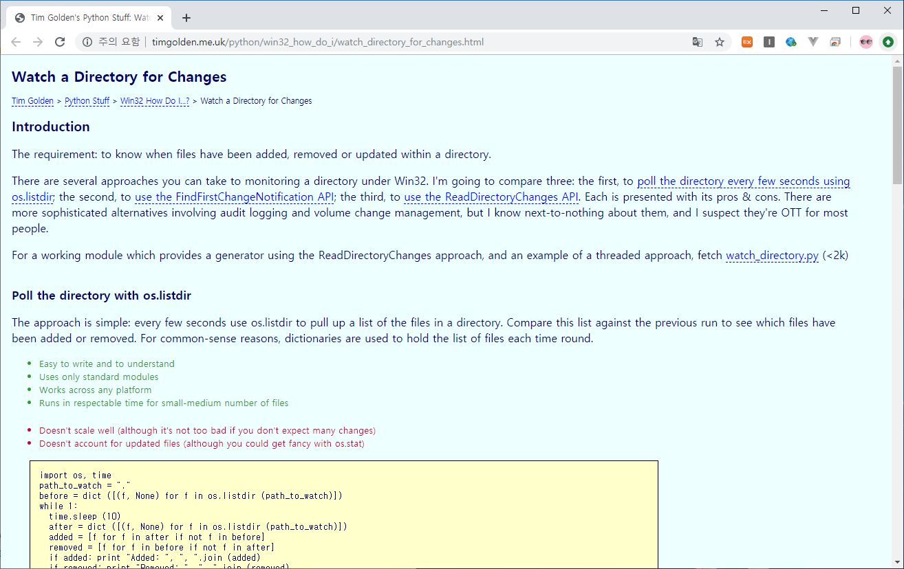 오늘은 파이썬으로 폴더의 변경점을 체크하는 라이브러리를 알아봤다.