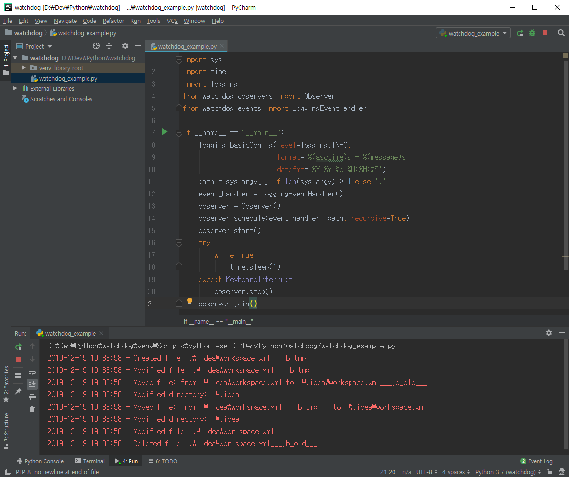 이제 사용할 경로를 path 에 적용시킨 뒤 watchdog 모듈로 폴더를 와칭할 수 있겠다.