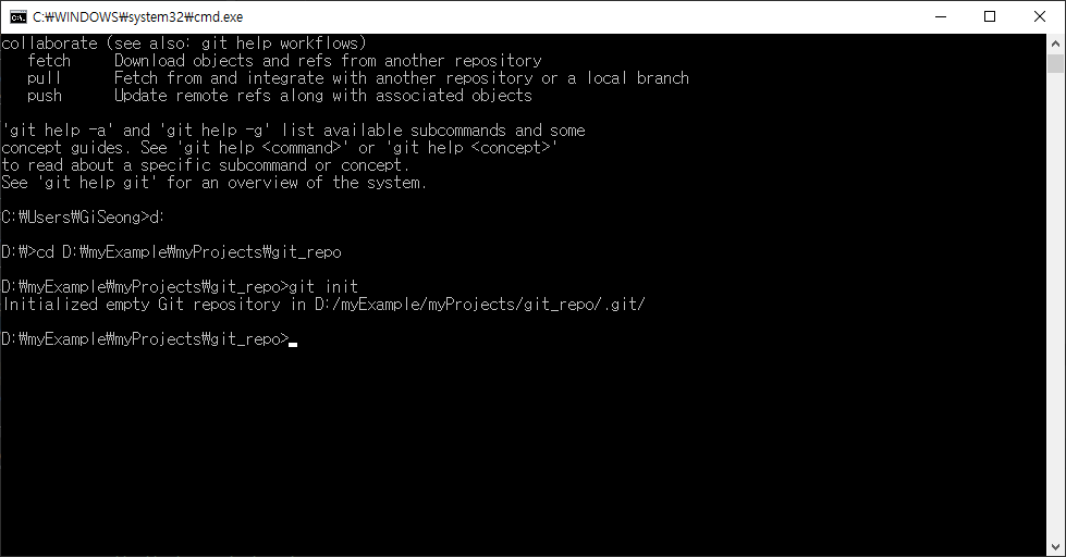 cmd 에서 cd명령어로 해당 디렉토리로 접근 후