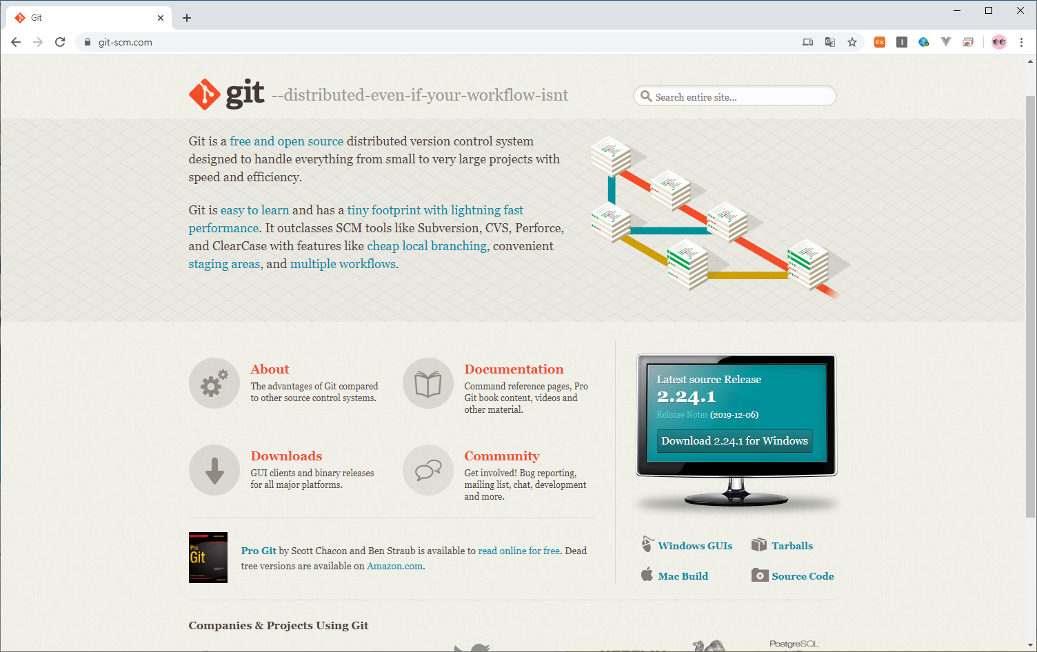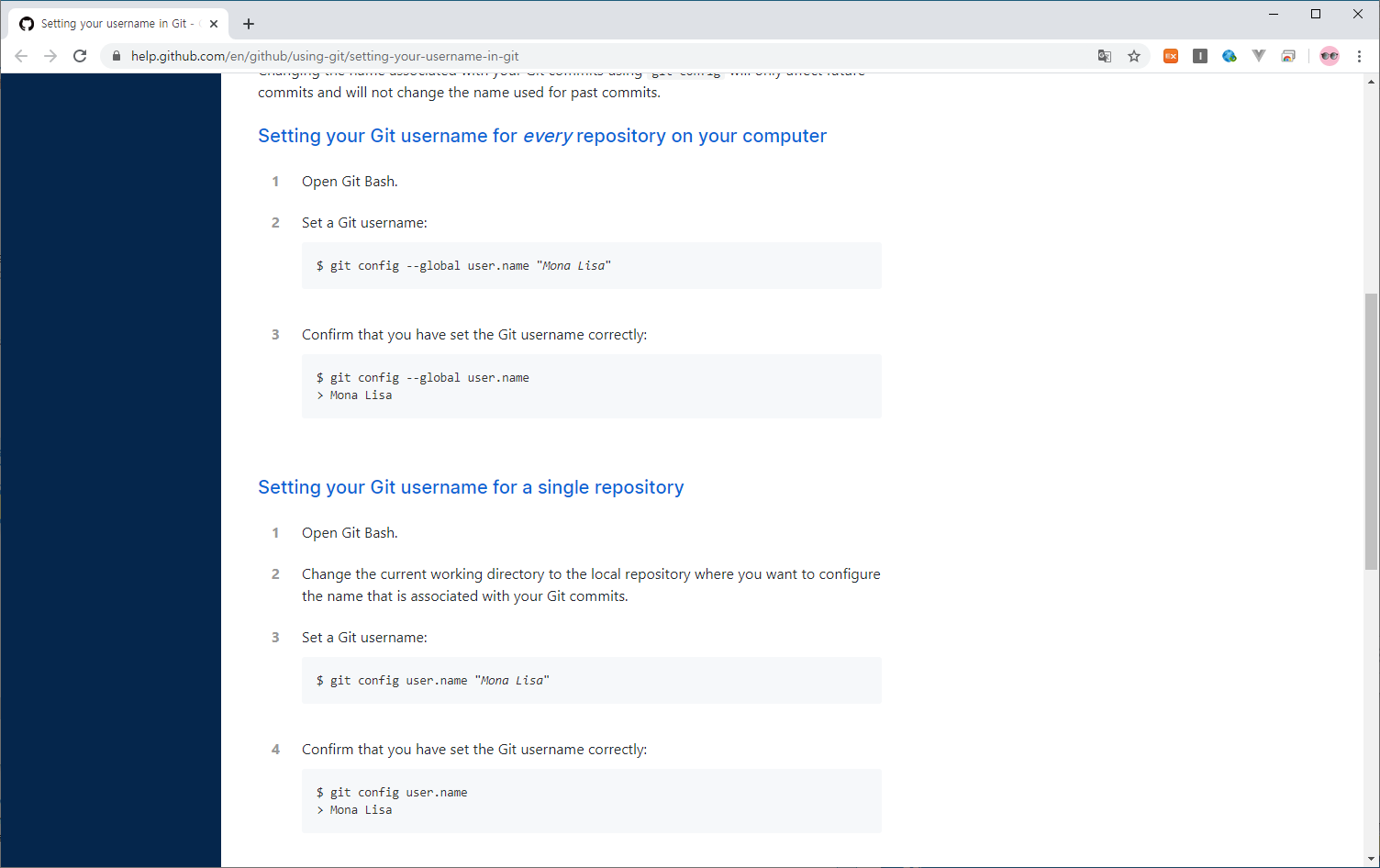 아래를 보면 Setting up Git 이라고 되어있는데 각 링크에 상세설명이 있다.