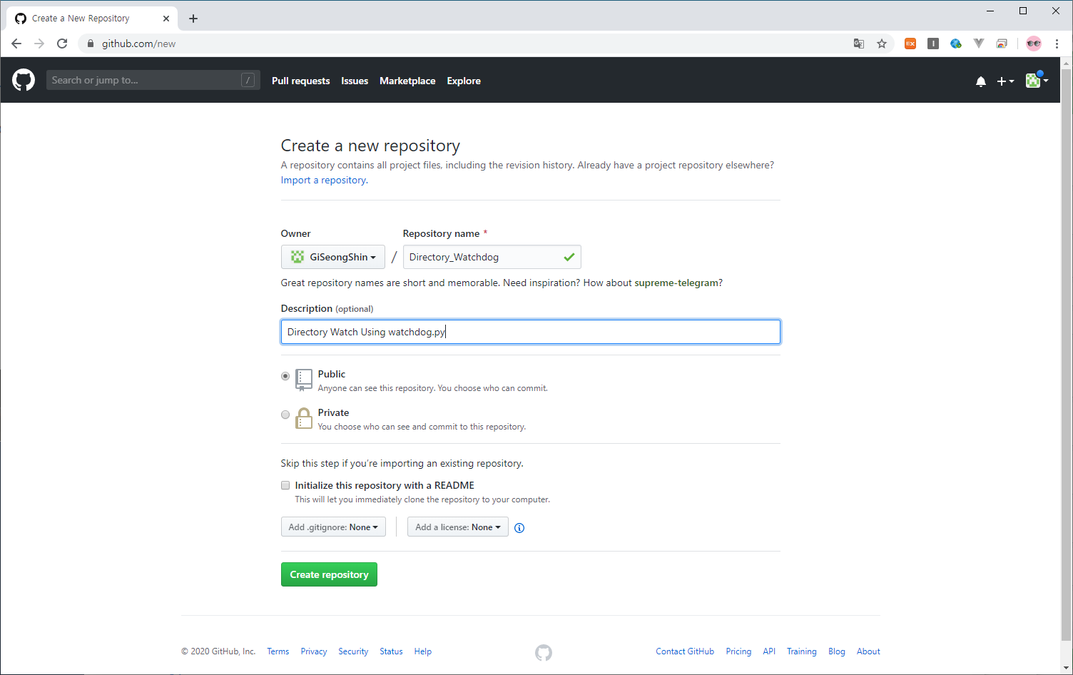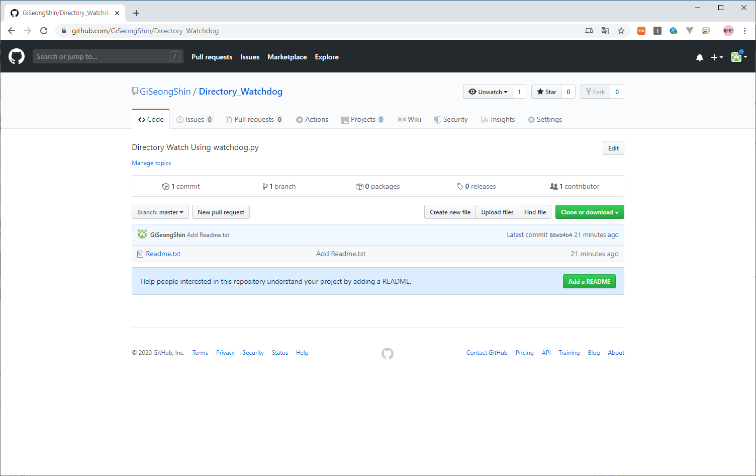 git remote add origin https://github.com/GiSeongShin/Directory_Watchdog
