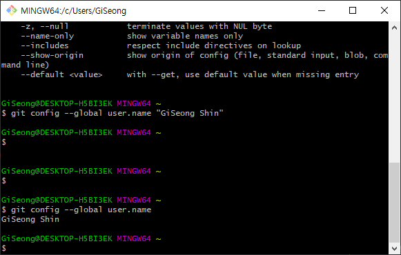 user.name 을 설정해주고.