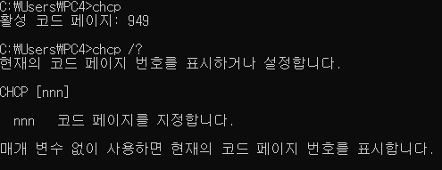 변경된 Codepage 는 chcp 명령을 실행한 cmd 창에만 적용되며
