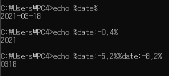 %date% 로 획득한 날짜에서 YYYY MMDD 를 획득하는 방법은 cmd 명령어를 통해 알 수 있다.