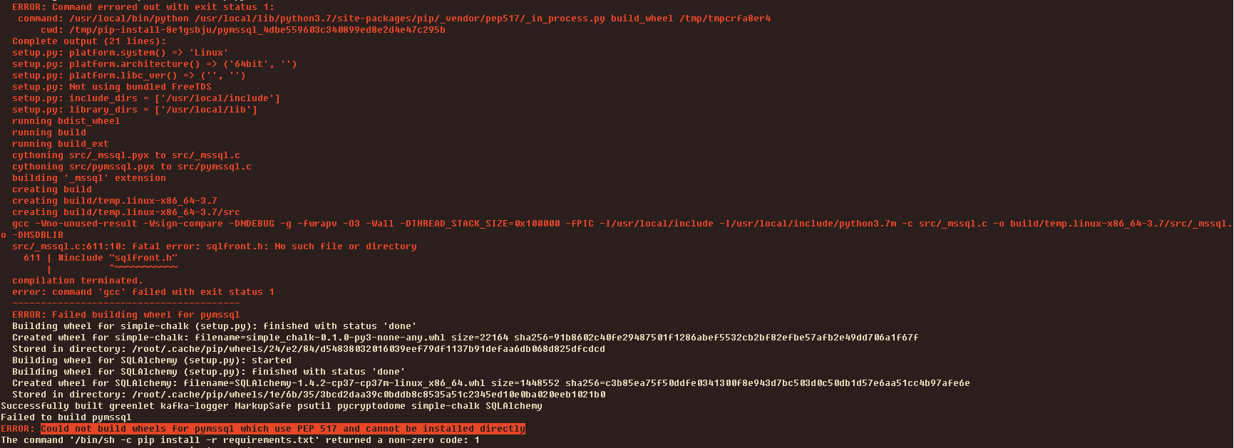 ERROR: Could not build wheels for pymssql which use PEP 517 and cannot be installed directly
