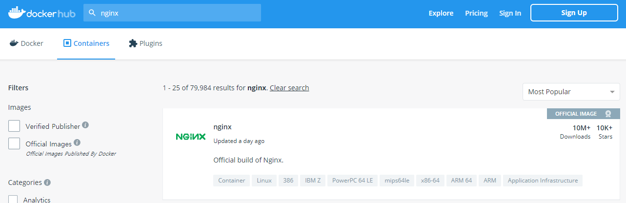 이미지를 다운로드하기위해 Docker Hub 를 사용합니다.