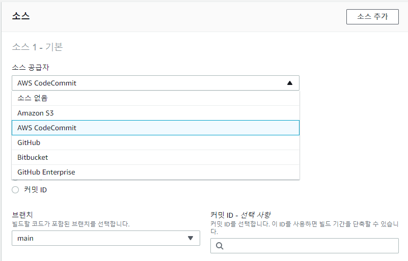 GitHub 을 사용해도 무관하며 AWS CodeCommit 도 GitHub 과 유사하다.
