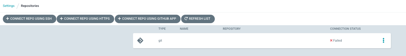 $ argocd repo add {git path} --username {username} --password {password} --upsert