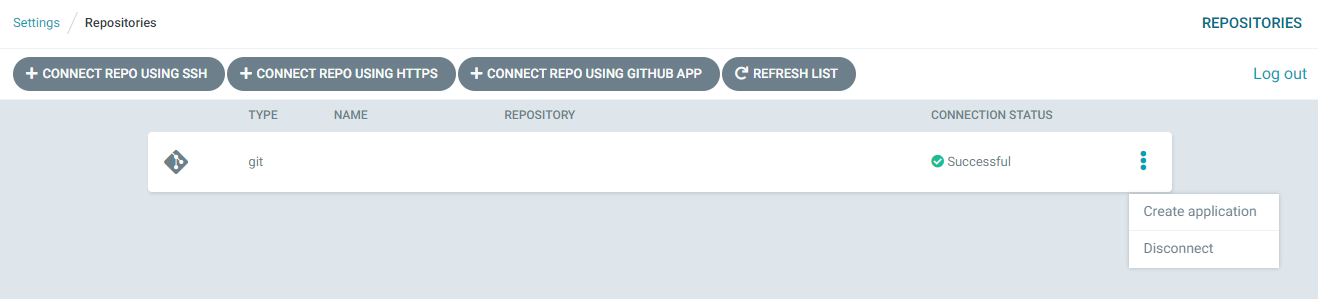 $ argocd repo add {git path} --username {username} --password {password} --upsert